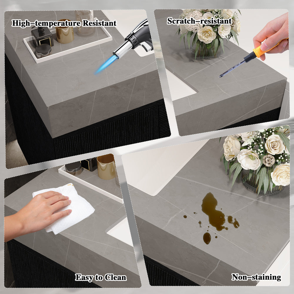 - 39.4-inch (100 cm) Armani Grey Faux Marble Top: Durable, stain-resistant sintered stone surface.
