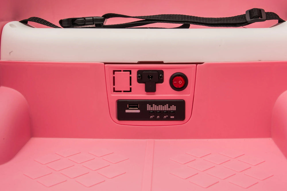 Give your little ones ages 1.5 to 5 years old the thrill of driving with this pink 12V electric ride-on bumper car. Designed with safety and fun in mind, it features a sturdy plastic body equipped with full-circle anti-collision padding and a secure five-point safety belt. The easy-to-use 2.4G remote control lets parents guide the ride while children enjoy 360-degree spins and smooth movement powered by dual 15W motors. Dynamic bilateral flashing LED lights and Bluetooth-enabled music add to the immersive driving experience. With its compact size of 29.5 inches long, 23.6 inches wide, and 18.9 inches tall, plus lightweight construction at just under 18 pounds, this rideable toy fits indoors and outdoors with ease. Elevate your child’s playtime adventure today with this entertaining and safe electric car.
