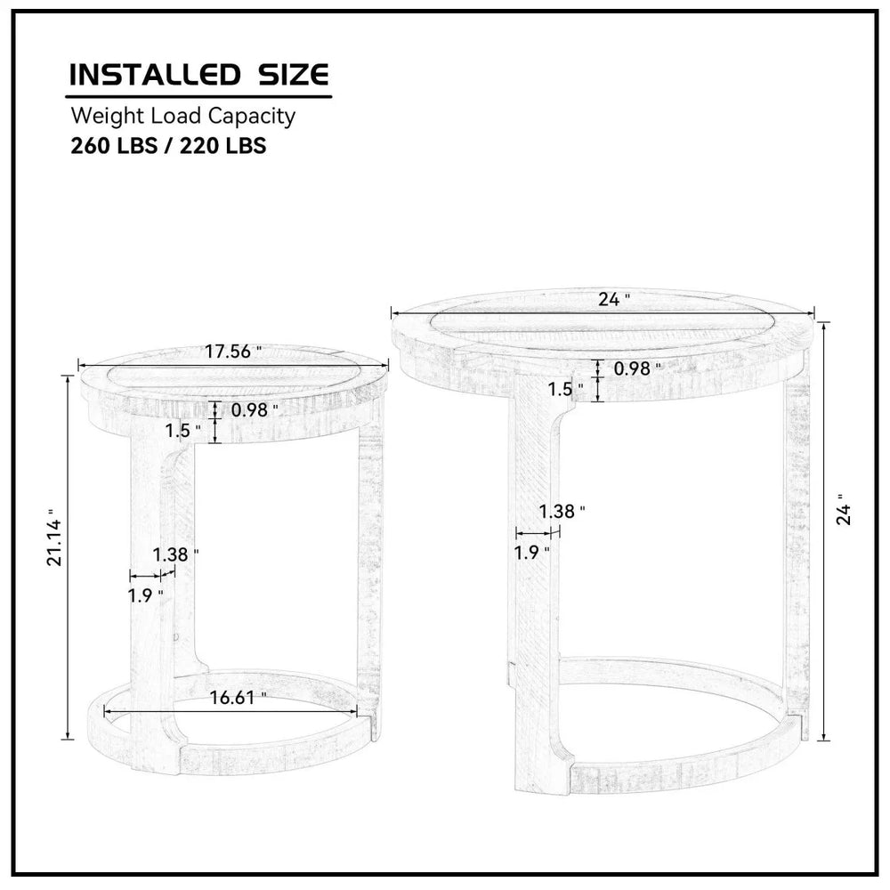 - Two Different Sizes: Larger table measures 24 × 24 × 24 inches; smaller table measures 17.6 × 17.6 × 21.1 inches, offering flexible placement.