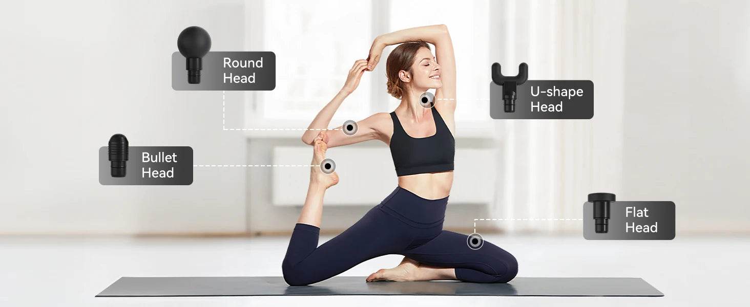 MEBAK massage gun offers deep muscle relief with 4 interchangeable heads and 5 speed levels (2000–2800 RPM), targeting neck, back, and post-workout soreness. Quiet and portable, it’s ideal for athletes, office workers, and fitness enthusiasts seeking effective pain relief.