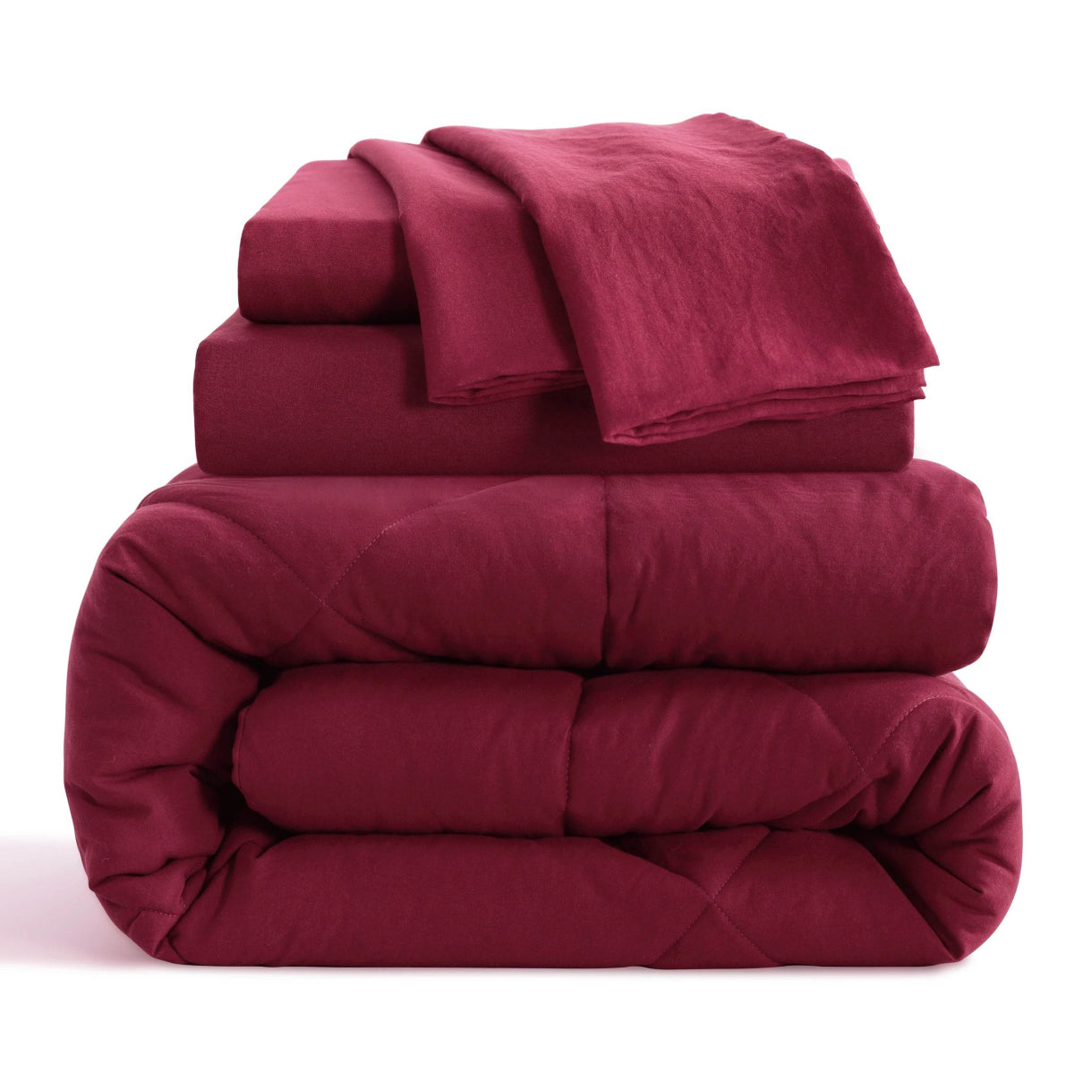 1 Comforter + 1 Fitted Sheet + 1 Flat Sheet + 2 Pillowcases (Pillows are not included)