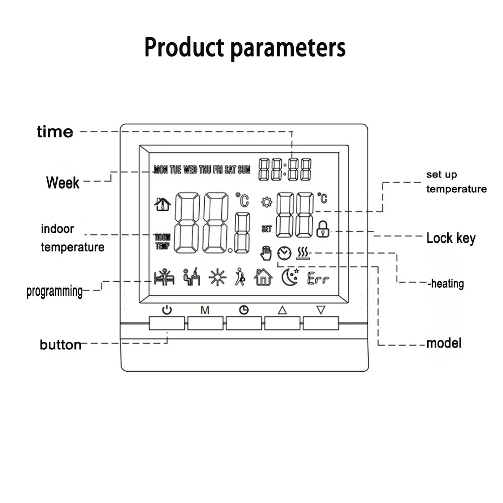 Programmable Smart Thermostat With Child Lock Backlit Display