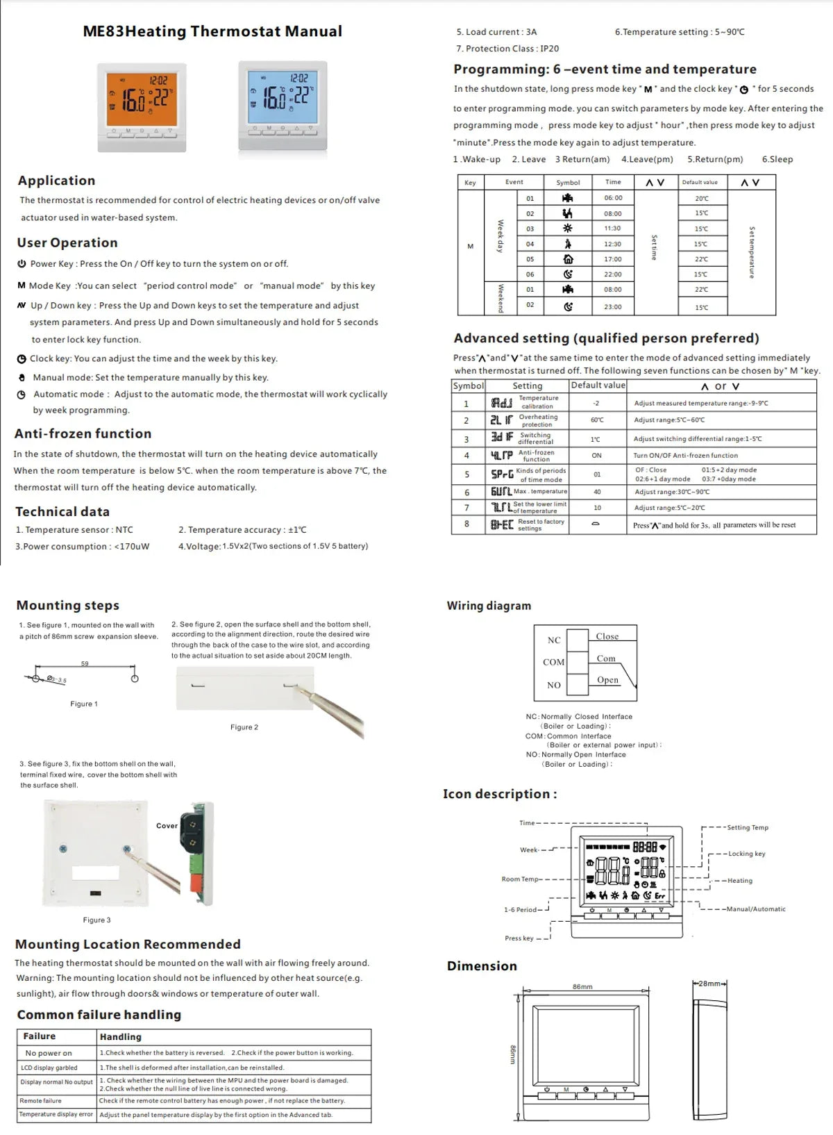 Achieve precise and energy-efficient heating with this advanced smart thermostat designed for gas boilers and underfloor water heating systems. Featuring dual modes, you can switch between manual control for instant adjustments or set a 7-day schedule for automated comfort that fits your lifestyle. The high-precision sensor maintains temperature accuracy within ±1°C, ensuring your home stays cozy without wasting energy. Built with a flame-retardant PC shell and a clear backlit display, this compact 3.4×3.4×1.1 inch (86×86×28 mm) unit offers easy readability and durability. The child lock function safeguards settings against accidental changes, making it ideal for families. Powered by two AA batteries, it’s simple to install and compatible with most central heating systems. Elevate your home’s comfort and efficiency today.