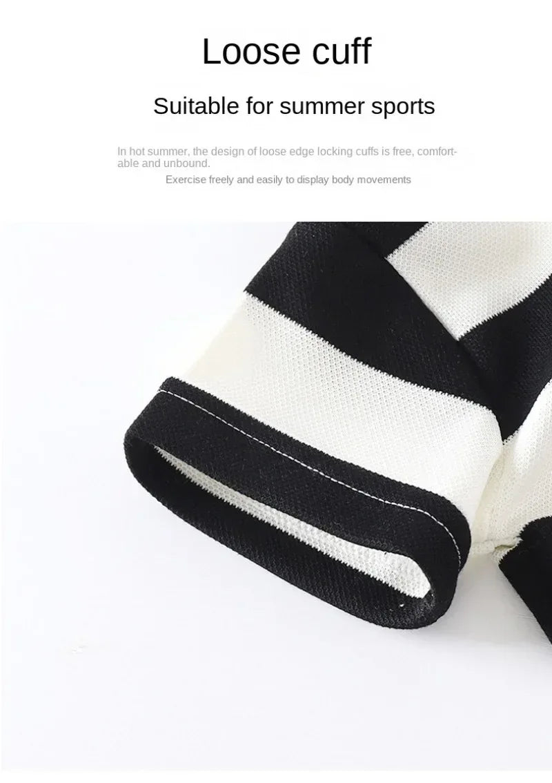 Summer children’s casual set features breathable polyester fabric with striped short-sleeved T-shirt and shorts, designed for ages 4–6 years. Pullover style with O-neck offers true-to-size comfortable fit, perfect for everyday play and summer warmth.