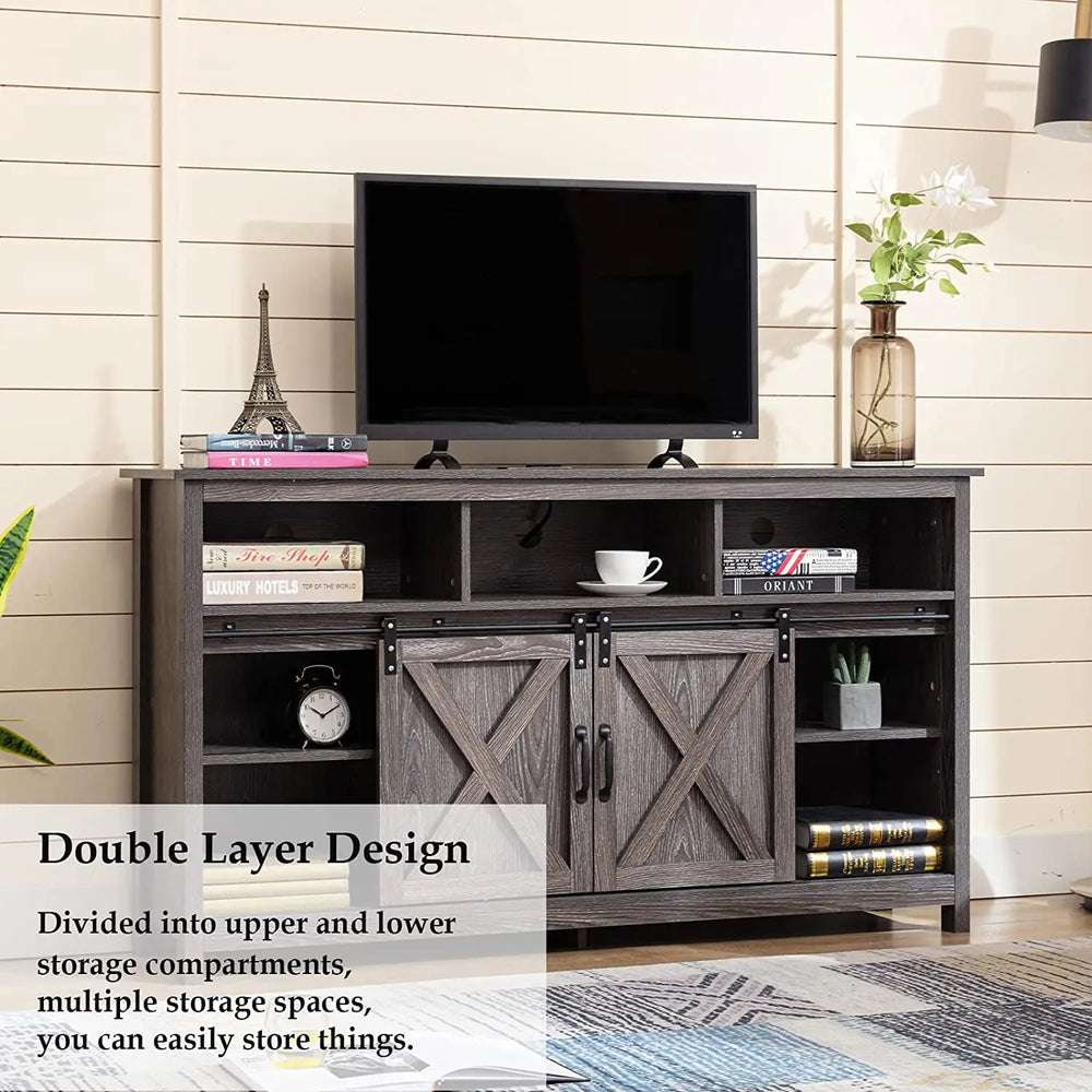 Farmhouse Sliding Barn Door Wooden TV Stand Cabinet
