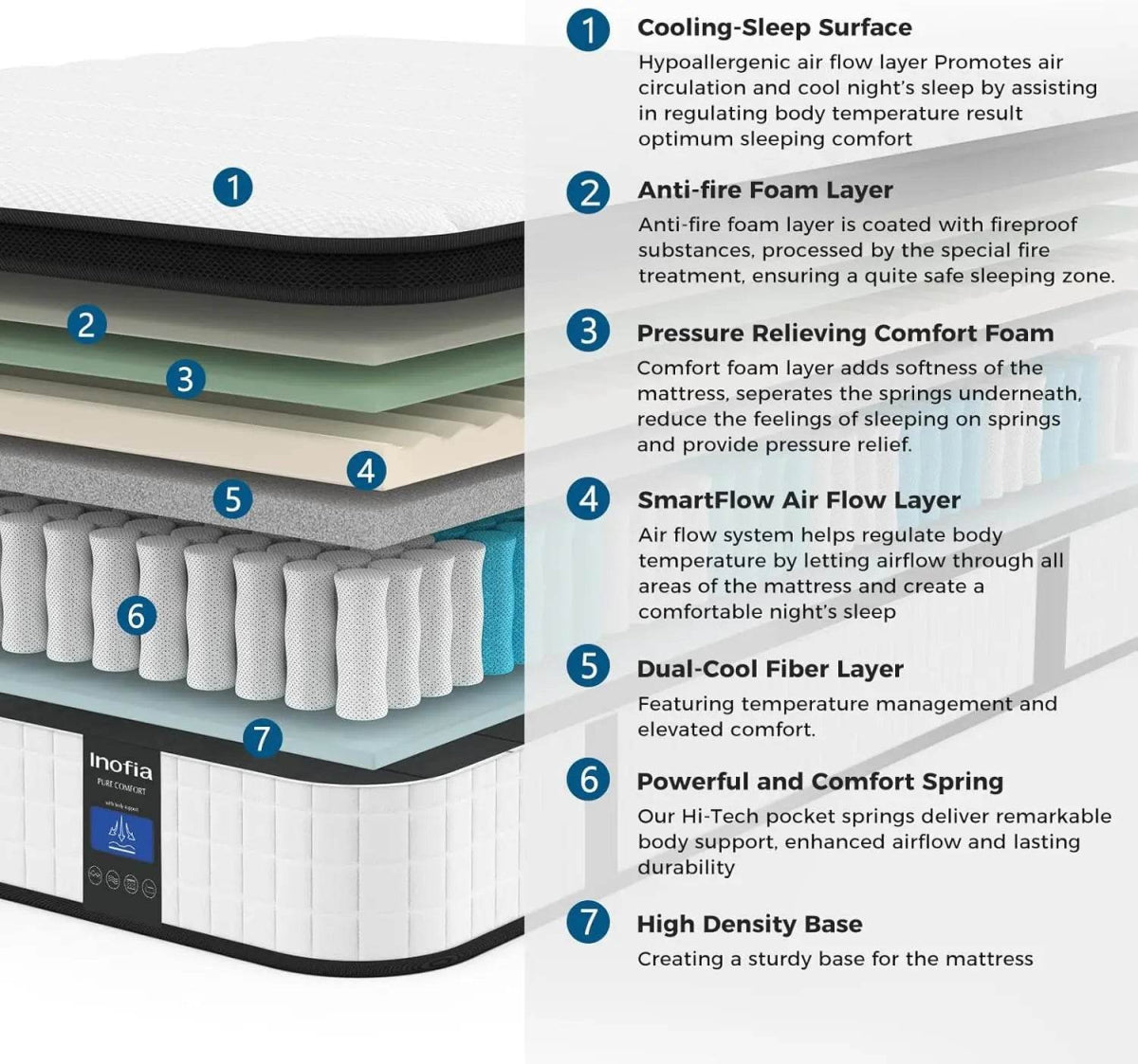 • 7 zoned coils provide targeted pressure relief and support