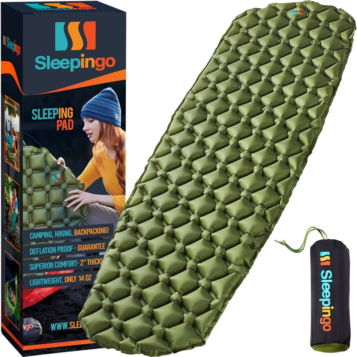 Ultralight Sleeping Pad - Inflatable Sleeping Mat for Camping, Hiking, Backpacking - 74x22 Inches Compact Air Mattress