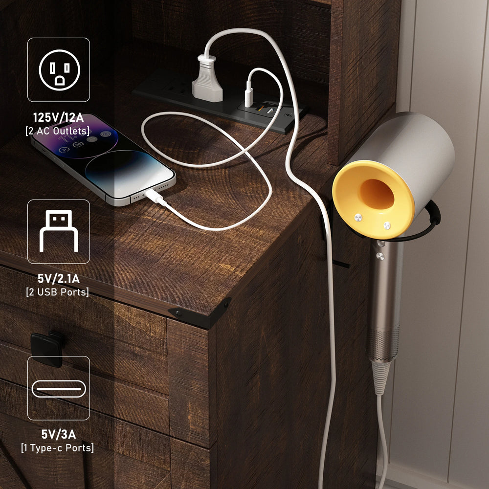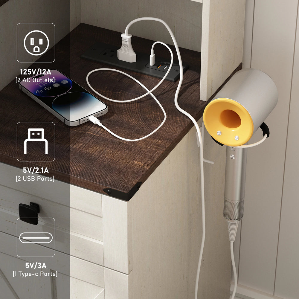 - Built-In Charging Station: Includes 2 AC outlets, 2 USB ports, and 1 type-C port for convenient device charging.